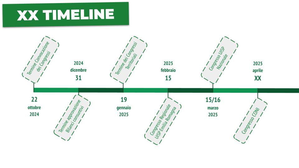 Il Congresso Nazionale della UISP si è formalmente aperto con la delibera del Consiglio Nazionale di metà settembre. A cascata tutte le articolazioni Regionali e Territoriali convocheranno quelli di rispettivo livello seguendo la timeline di questa immagine.